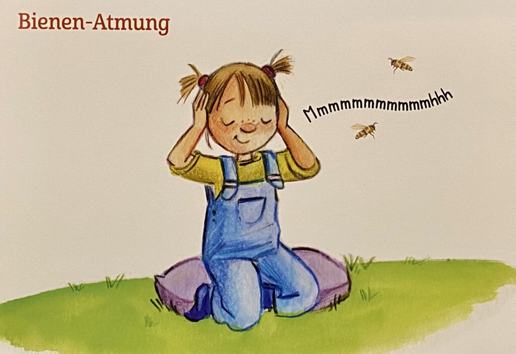 Die Atemübung „Brahmari“, die ihren Namen von einer indischen Bienenart hat, ist wunderbar effektiv und außerdem kinderleicht. Dabei wird beim Ausatmen der summende Ton einer Biene erzeugt. Um das Summen besser wahrnehmen zu können, hält man sich beide Ohren zu. Das findest du komisch? Ja, ist es vielleicht beim ersten Mal auch, aber du wirst merken, dass die Atemübung eine wunderbar beruhigende und ausgleichende Wirkung auf dich hat. Du bist mal wütend oder fühlst dich ängstlich oder gestresst? Dann summe für ein paar Minuten friedlich wie ein Bienchen und du wirst merken, wie es dich beruhigt.