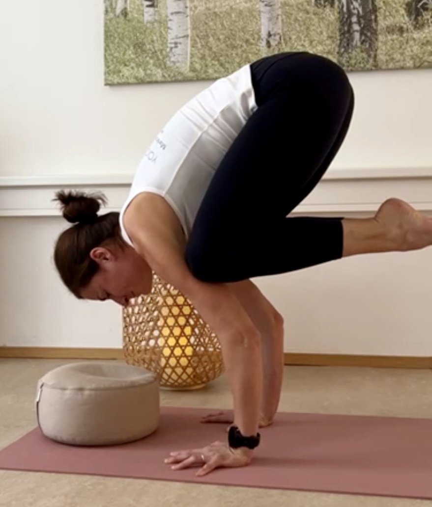 Körperlich: Die Handgelenke werden gekräftigt und flexibel. Die Armmuskeln werden gestärkt. Die Krähe fördert Körperbewusstsein und Gleichgewicht. Sie hilft Nerven gesund zu halten und beugt Nervenproblemen vor.
